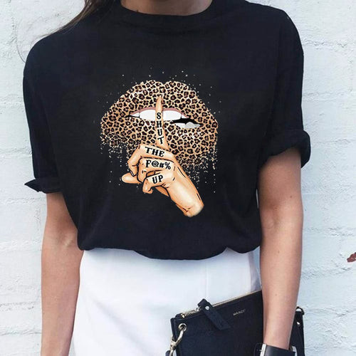 Women T Shirt Lips Leopard Funny Print labios T-shirt Hipster Costume Women Tshirt Summer leopardo Lip Tee Shirt Kleding Vrouwen