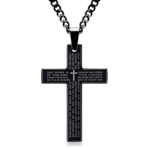 Retro Christian Jesus Single Titanium Scripture Cross Necklace Stainless Steel Black Prayer Choker Cross Pendants For Men Colar